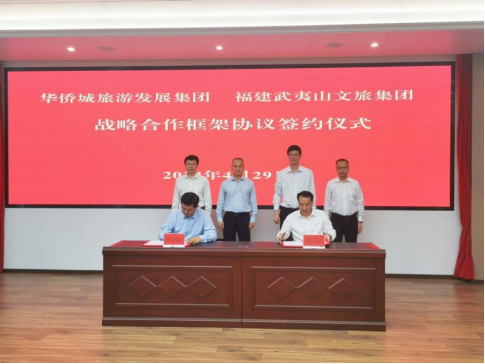 4月29日,华侨城旅发公司与福建武夷山文旅集团有限公司在武夷山市签署战略合作框架协议。华侨城集团党委常委、副总经理施兵,武夷山市市长余洲分别致辞并共同见证签约,华侨城旅发公司执行董事、党委书记、总经理张树民,武夷山文旅集团董事长吴王代表双方签约。